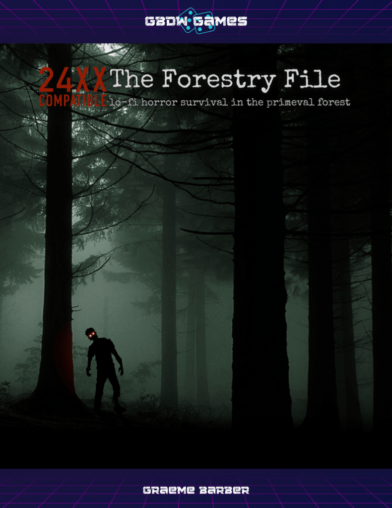 In the planning stages is a horror release for October, The Forestry File. This is a 24XX horror game set in the contemporary Pacific Northwest, where a long closed section of forest has been opened for tourism after 60 years. Things go sideways fast, the players must face (or run from!) terrors from a long forgotten Cold War experiment. I’m already having a tonne of fun coming up with horror movie style “legally distinct” names for companies, government agencies, and everything! This should be a great go, so watch for updates as I warp 24XX into horror shape for this one!